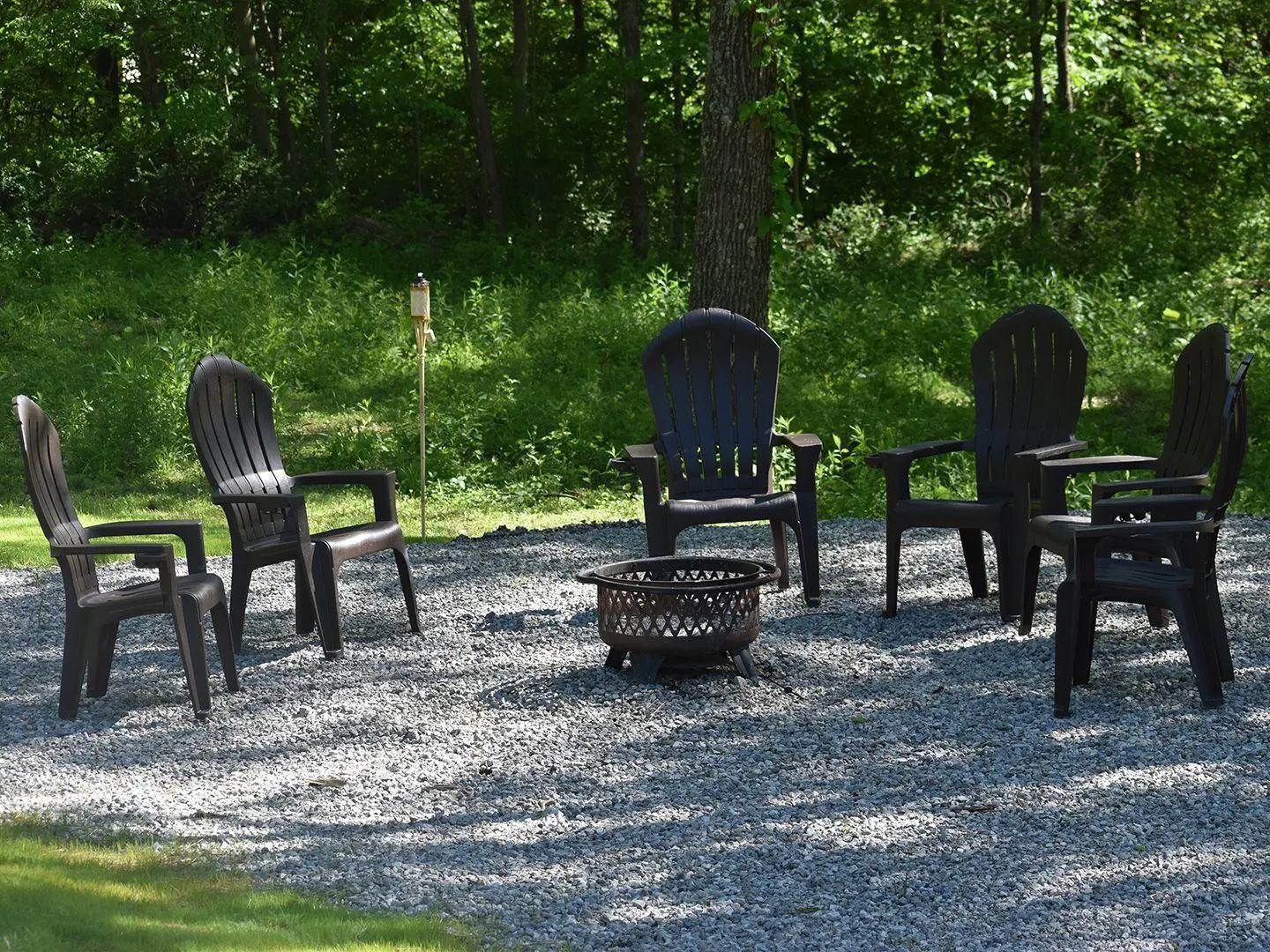 The large fire pit is ready to warm your toes while preparing tasty treats. We provide free firewood for your stay. The main living area is situated to maximize the views while creating great seating for conversation and handling guests.